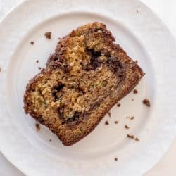 I’ve been making this zucchini bread for years and years but I usually top it with chocolate chips. Or swirl the chips right in the batter. I hate to say it, but it’s pretty much the only way my kids will eat the zucchini bread. Not because they don’t like it without the chips… but because they get too freaked out by the green bits of zucchini in the bread.